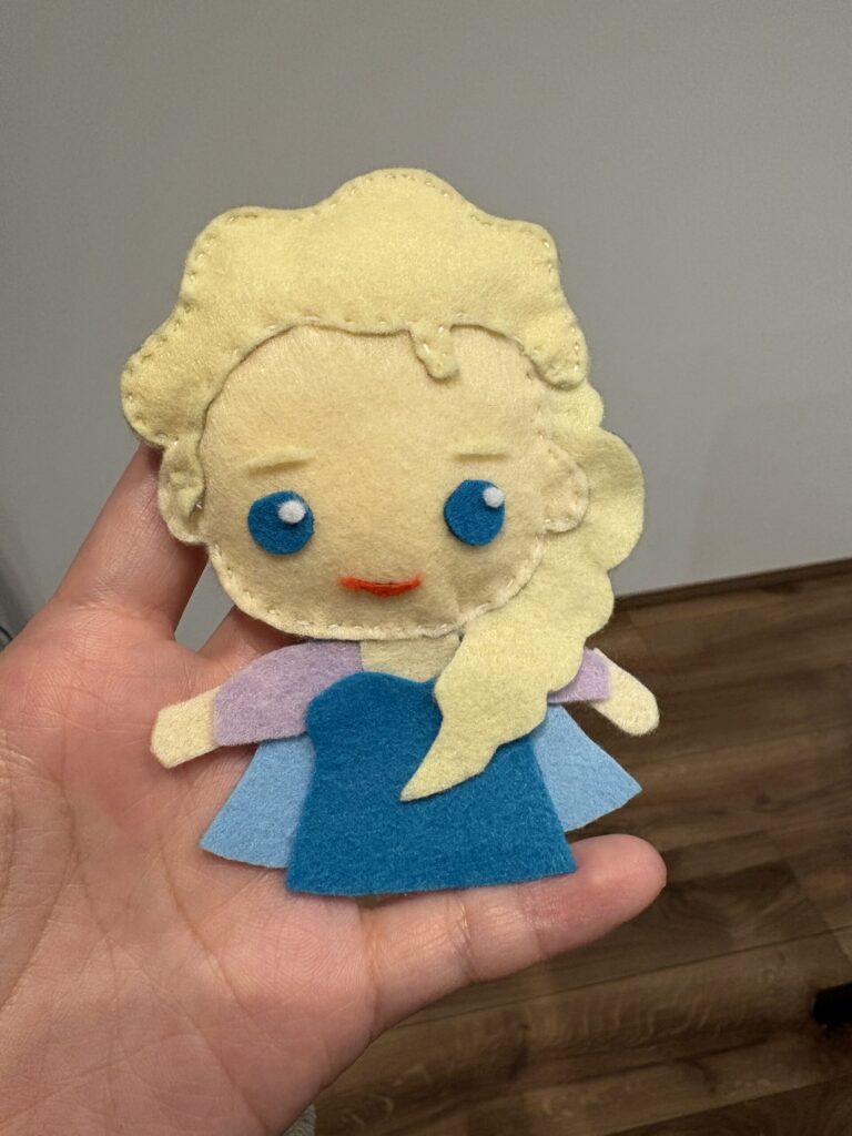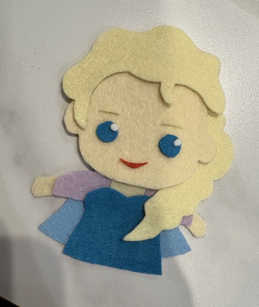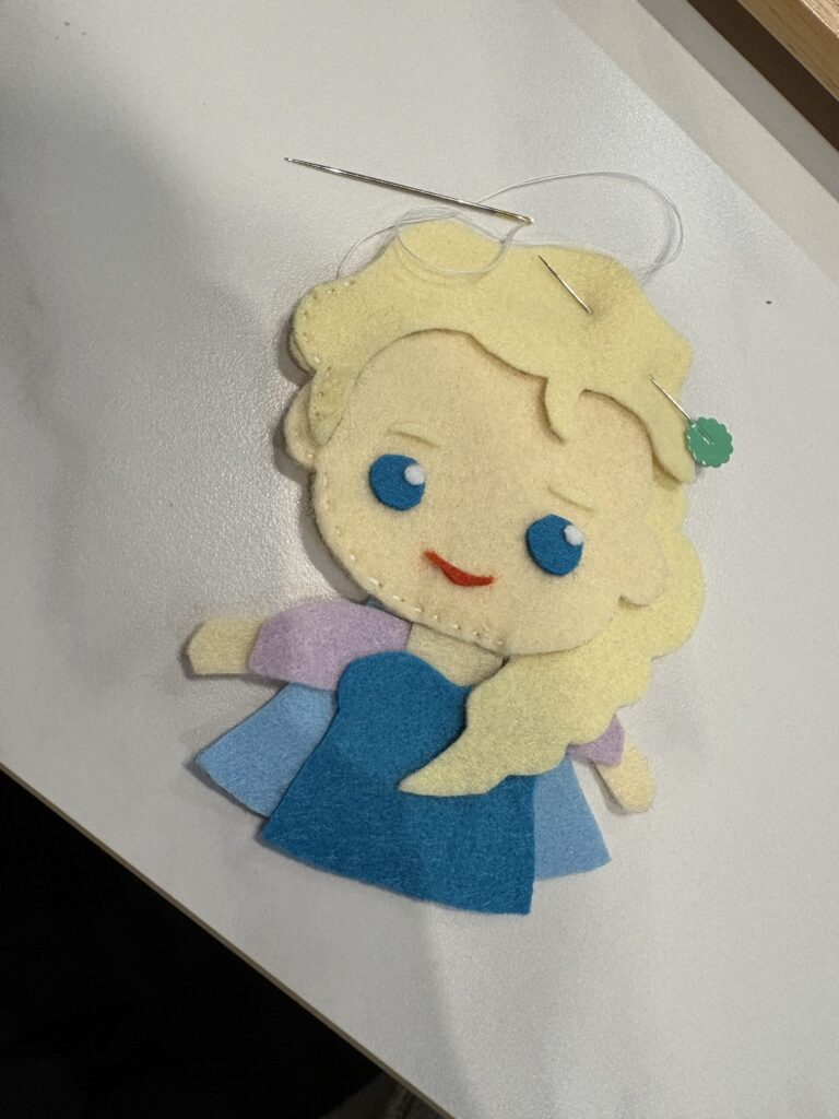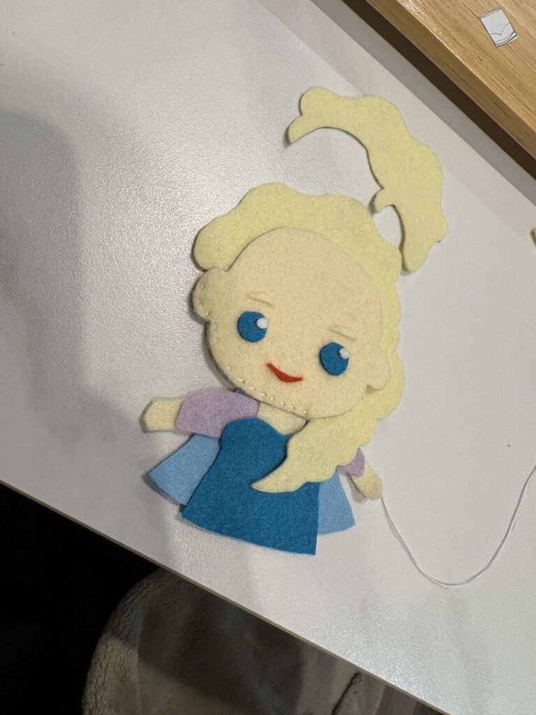 100均フェルトだけで、簡単に雪のプリンセス風マスコットを手作りすることができました。