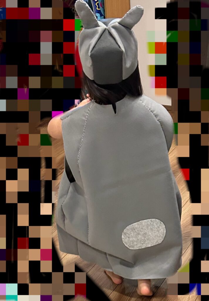 ネットでよく紹介されている「100均フェルトで作るかぼちゃ衣装」をアレンジし、トトロ風のコスチュームに挑戦。